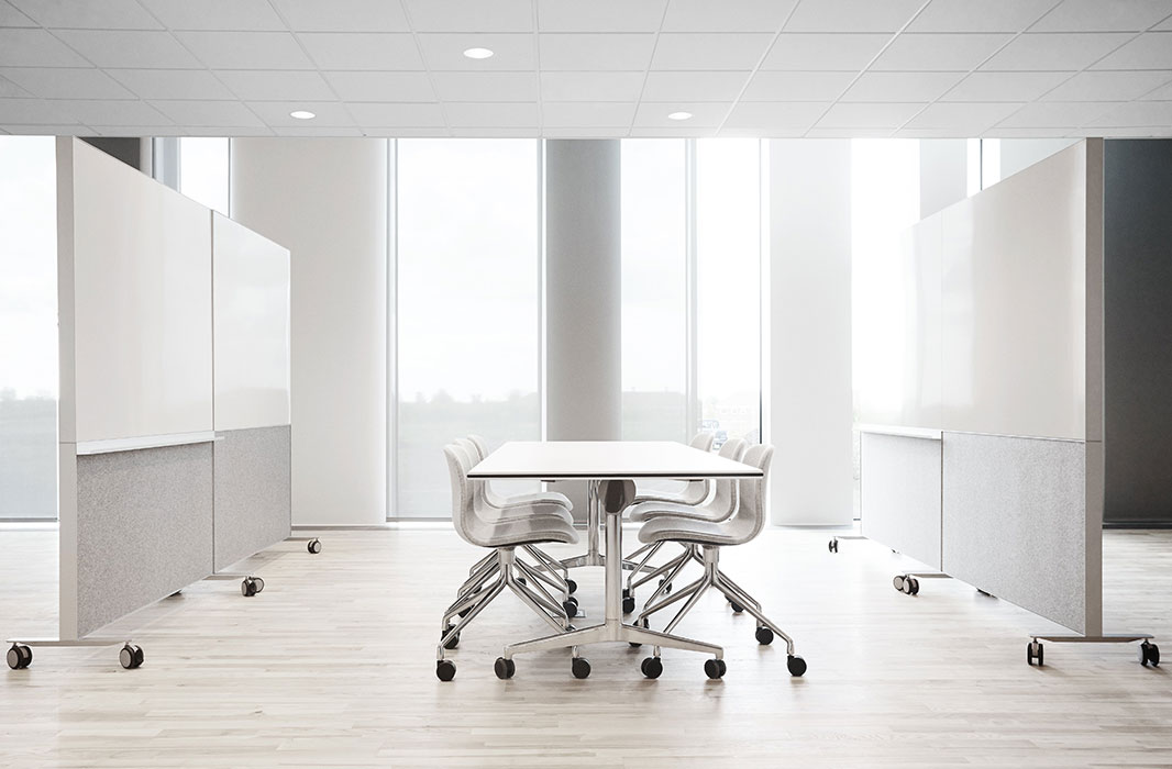 Alumi Combi & Combi-lite are mobile divides with magnetic writing boards & acoustic treatment encouraging colleagues to have spontaneous meetings where ever they want.