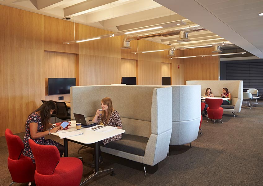 The high-backed Cwtch sofa with its distinctive elegant design can be bridged to create an enclosed seating pod / booth. Office booths offer that essential space within any busy work or public area & Cwtch’s design is an inviting quiet space for; work, video conferencing, meetings or a quick coffee.
