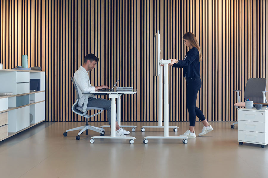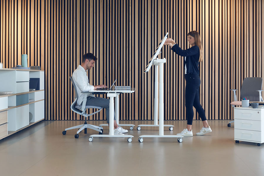 Se lab table-board is a desk which is perfectly adapted to the needs of agile workspaces & enables dynamic working. This mobile desk is electrically height-adjustable & equipped with a rechargeable battery (apporx. 50 times on one charge) so that it can be used independently of a stationary power supply.